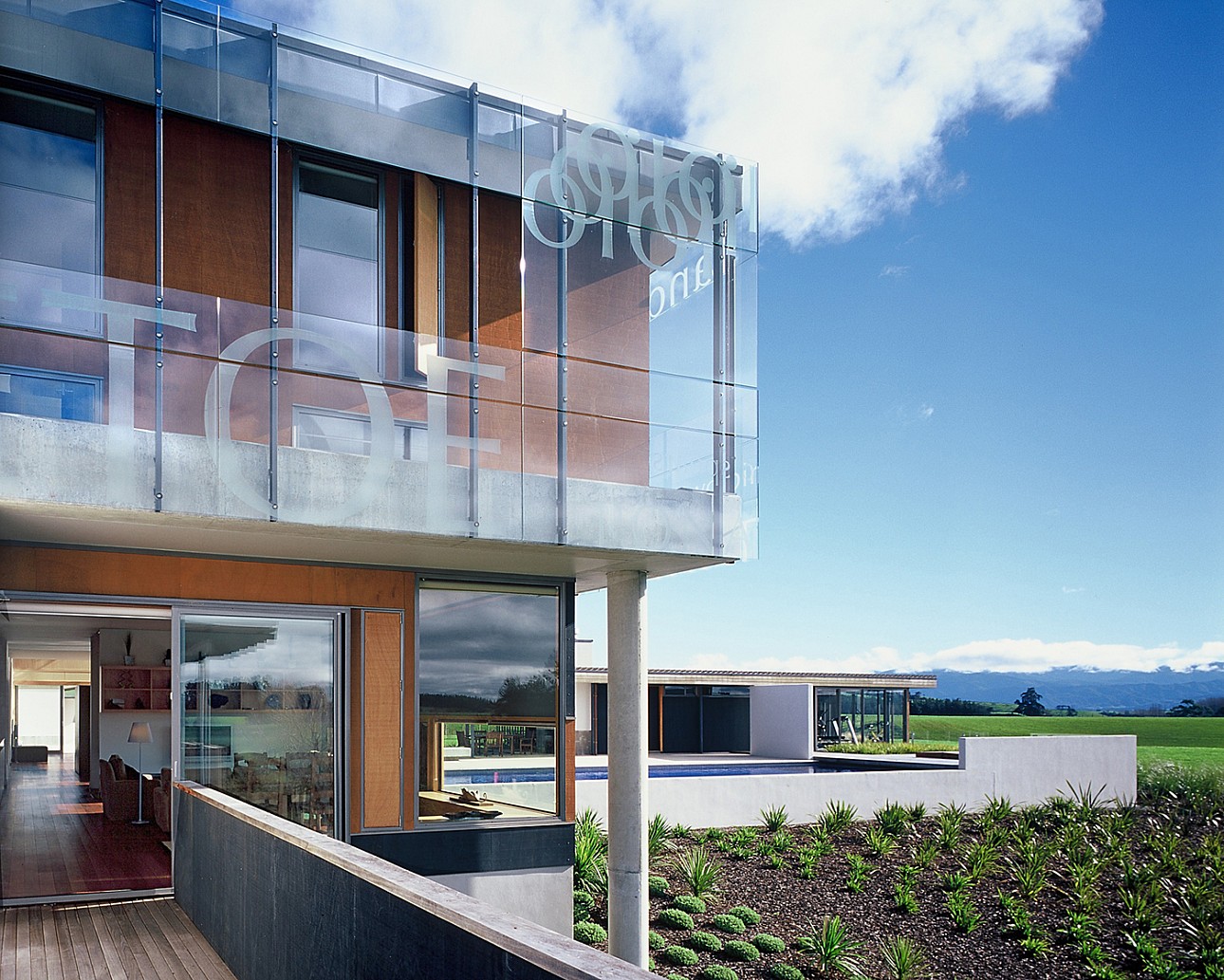 Catherine Griffiths was commissioned to provide a sandblasted artwork to the screen. She in turn suggested the use of text and recommended that Jenny Bornholdt be commissioned to write a poem. This work provides another layer of meaning to the house and a personal imprint for the owners.