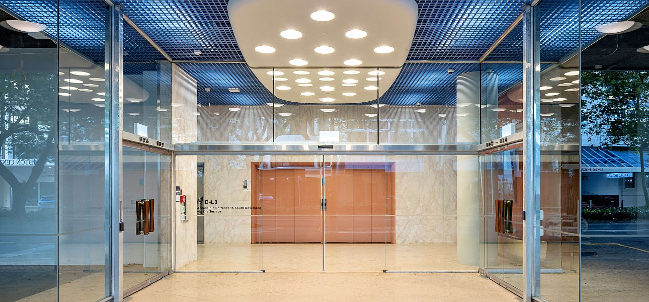 Of particular importance are the entrance lobbies to Lambton Quay and The Terrace. These spaces make a significant contribution to the streetscape, and the unique suspended curvilinear ‘clouds’ have been carefully protected and restored. Similarly, the recessed inverse ‘clouds’ to the lift lobbies and corridors have been retained and custom light fittings recreated.