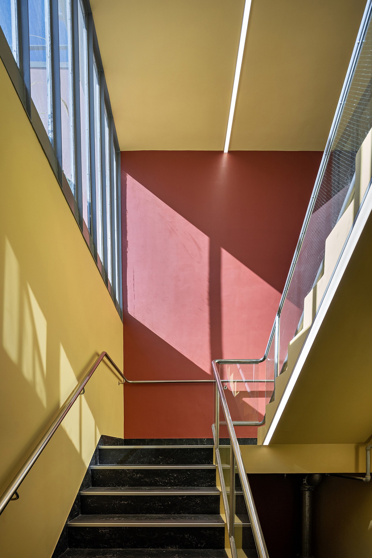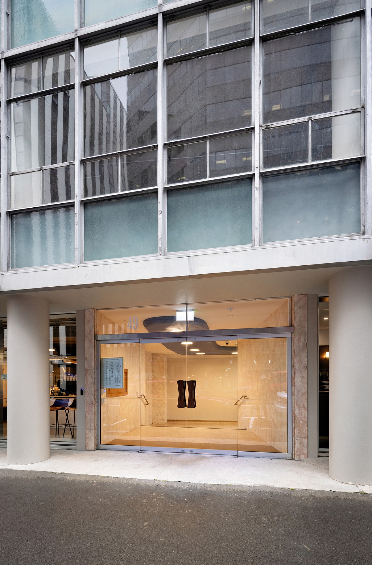 The end result belies the complexity of the works, which included: major structural upgrades by way of additional shear walls and thickening of existing shear walls; improving connection by linking tenancies between the original 1957 building and the 1969 south building; major refurbishment of the curtain wall aluminium joinery; removal of a cantilevered conservatory space at level 1; infilling a floorplate in the south building; closing the gap between the façade and the floors to achieve fire ratings throughout; incorporating an end-of-trip facility on the basement floor; removing a sizeable amount of asbestos; improvements to the plant rooms; waterproofing of balconies; and restoration of the rooftop terrace.